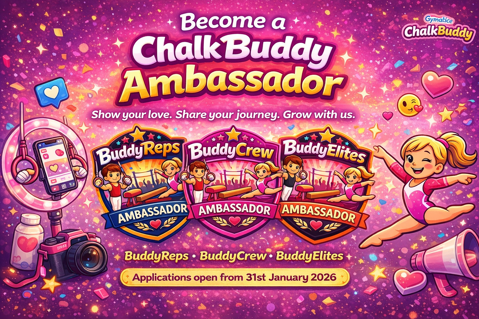 I love my ChalkBuddy. The whole idea of compacted portable chalk holder is just brilliant. The stylish design, vibrant colour and so much less waisted chalk is what every gymnast wants.